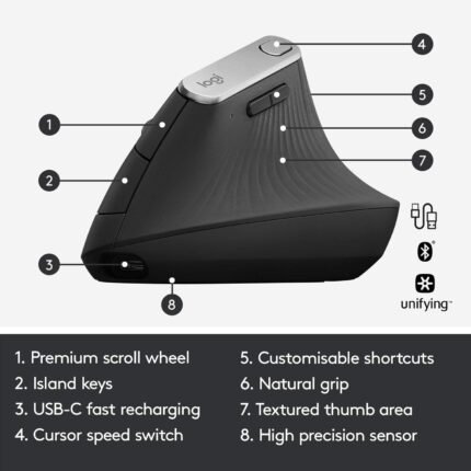Logitech Wireless Mouse MX Vertical Ergonomic Design Reduces Muscle Strain