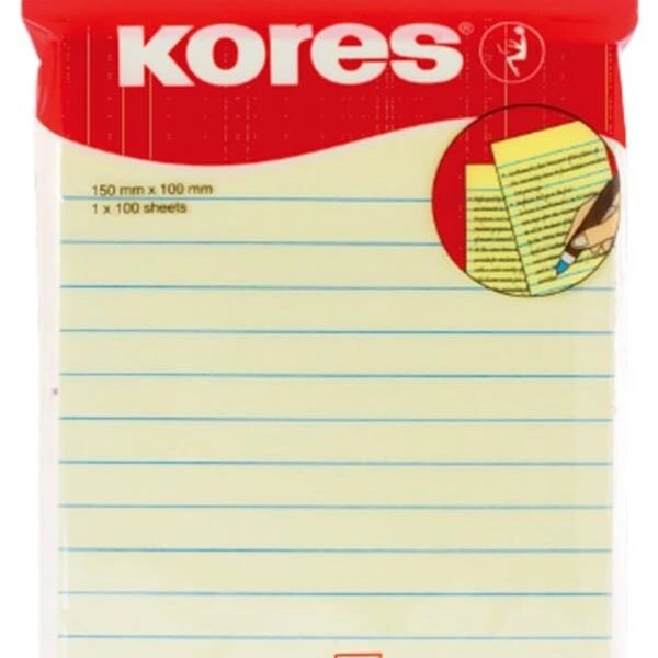 Kores Yellow Lined Sticky Notes – Coloured Self-Stick Memo Pad, 150 x 100 mm, 100 Sheets | Ideal for School, Teachers & Office Use – General Information:
