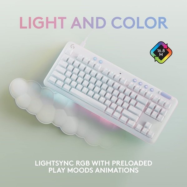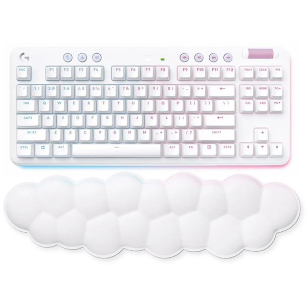 • Cloud-soft Comfort: Float away with G715’s dreamy white design and comfy, cloud-shaped palm rest; compact mechanical TKL keyboard layout and adjustable height give that good game feeling, all-day long