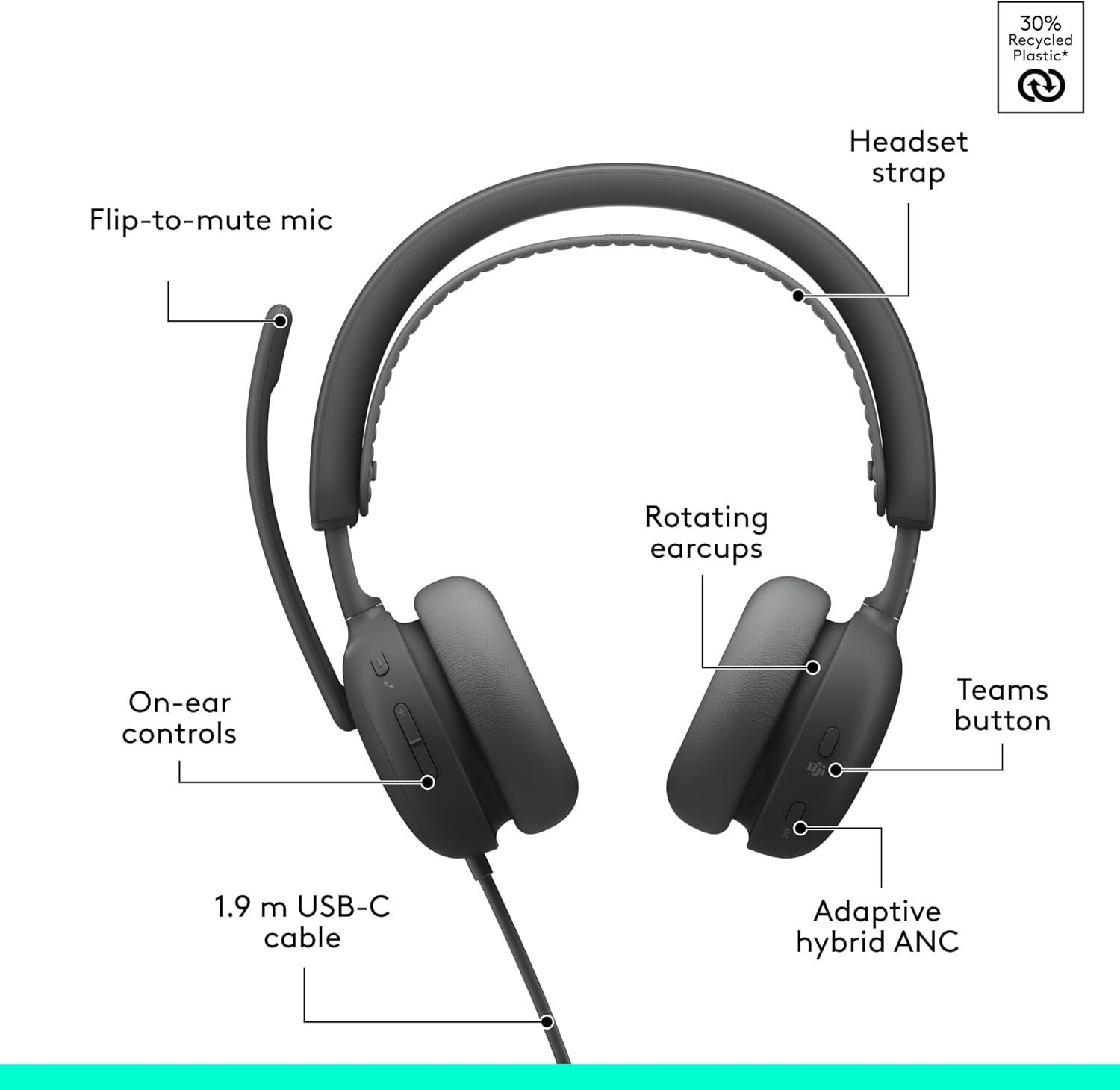 • Adaptive Hybrid Active Noise Cancellation (ANC): Automatically senses and adapts to your environment so you hear the meeting, not the chatter.