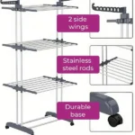 4-Tier Design: Offers multiple levels of drying space — ideal for a variety of garments including longer items like dresses or trousers.