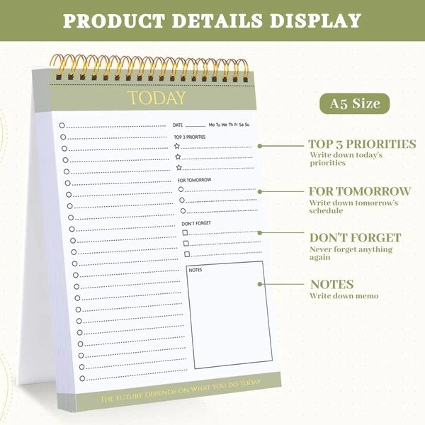 With 104 sheets per notepad, you get long-lasting value and plenty of space to plan, track, and accomplish your daily goals. The durable spiral binding allows pages to turn smoothly and lay flat for comfortable writing. Compact and lightweight, these planners are easy to carry in a bag, backpack, or briefcase, making them perfect for everyday use.