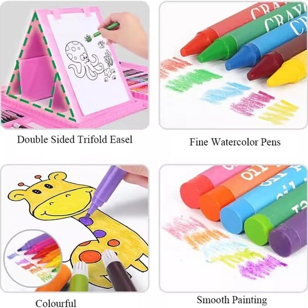 Vivo Technologies 208pcs Drawing Kit Colouring Art Set for Kids with Double-Sided Trifold Easel – Key Features: